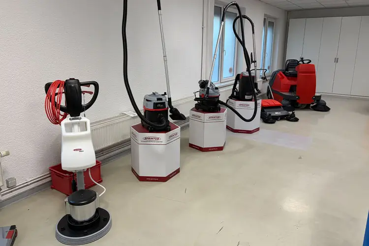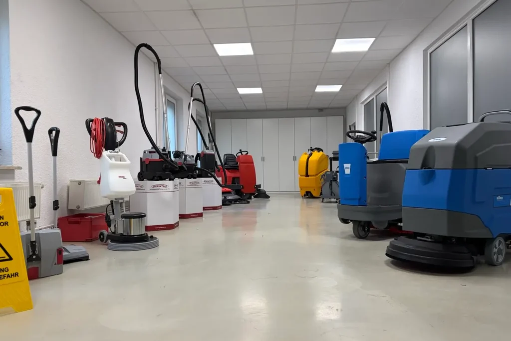 Unsere technische Ausrüstung, die von der Einscheibenmaschine bis hin zum Trockensauger reicht, steht stets für Sie zur Verfügung.