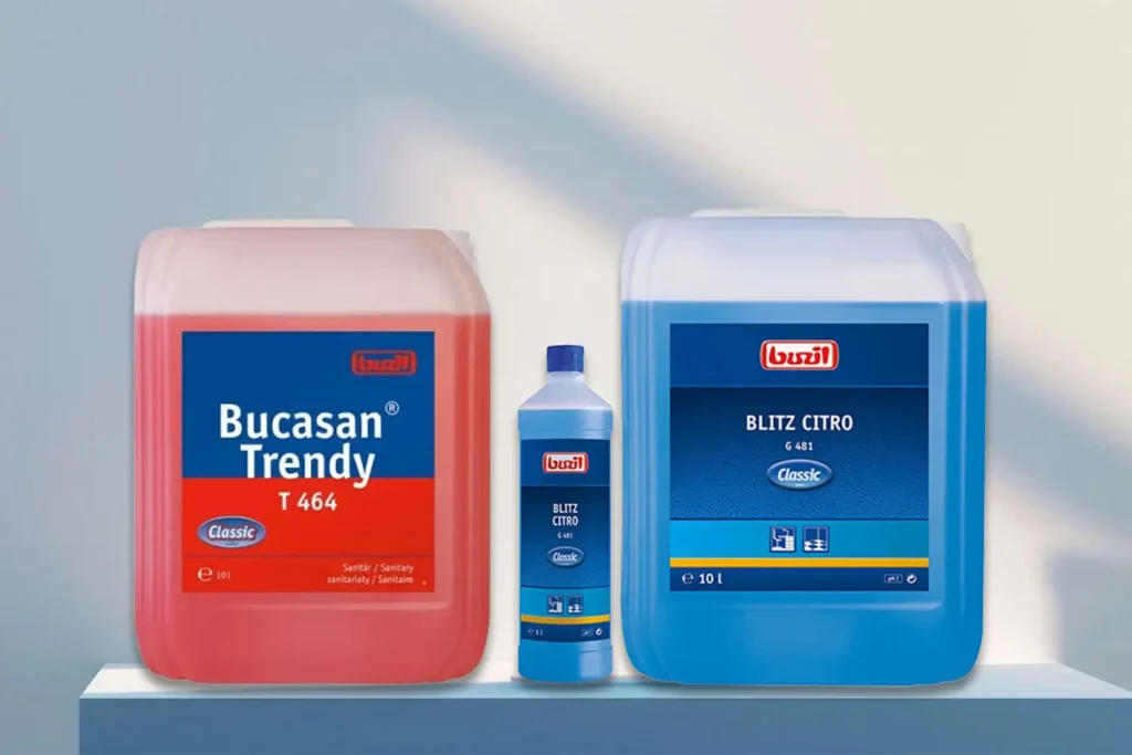 Umfangreiche Palette an professionellen Reinigungsmitteln, die alle Aspekte des Gebäudemanagements abdecken.